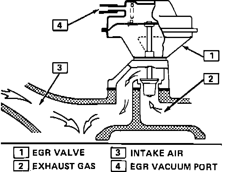 A vacuum operated valve on the intake manifold allows a controlled amount of exhaust gas into the intake air.