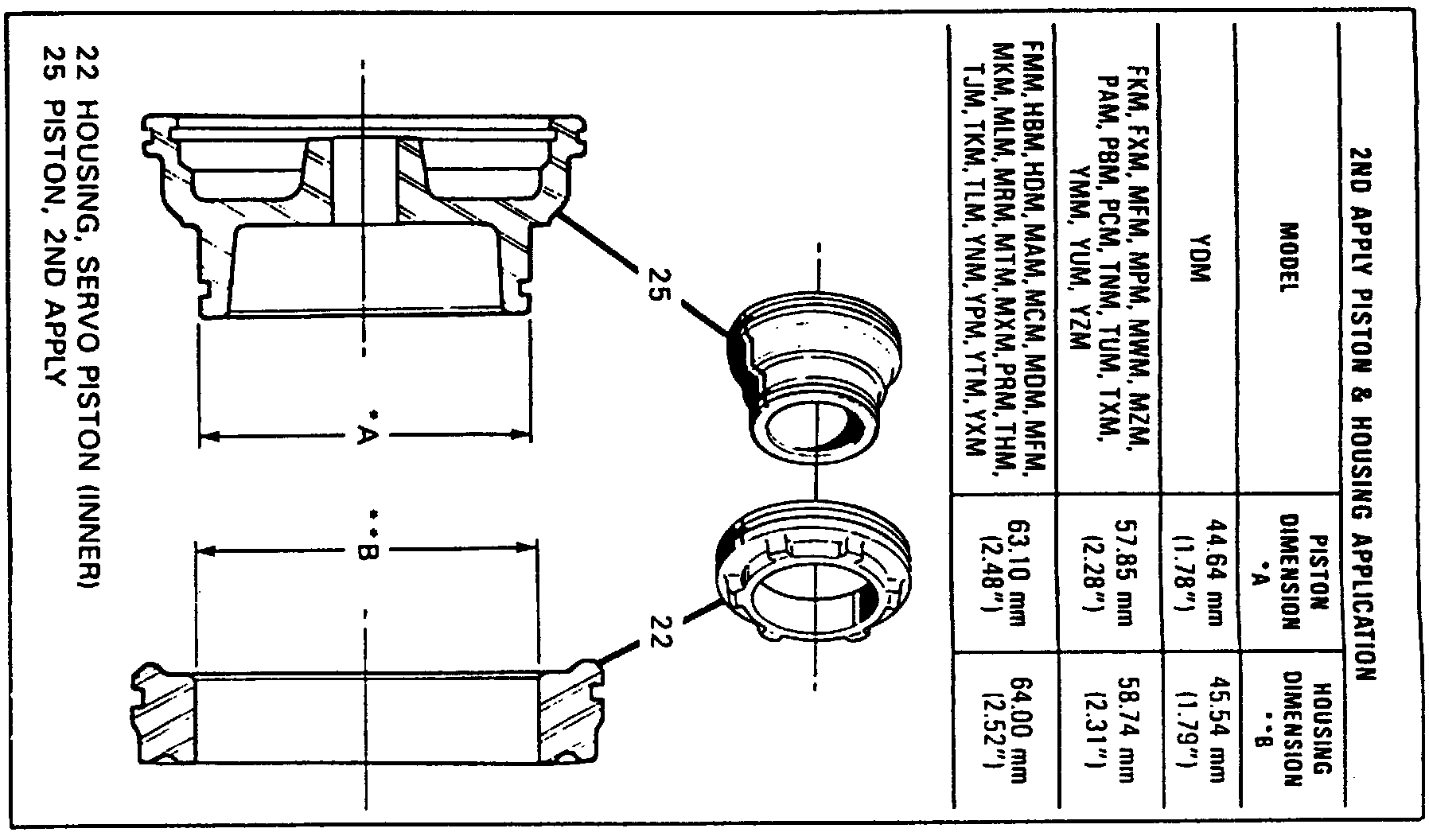 9. Measure piston dimension A and housing dimension B. If measurement is not as specified, replace piston or housing as required.
