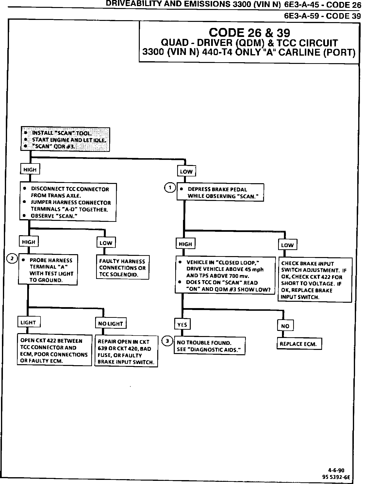 The illustration on this bulletin replaces Code 26 and 39 Diagnostic Charts on Pages 6E3-A-45 and 6E3-A-59 in Section 6E3 "Driveability and Emissions" for the 1989 Cutlass Ciera and Cutlass Cruiser with the 3300 engine and 4TGO transaxle.