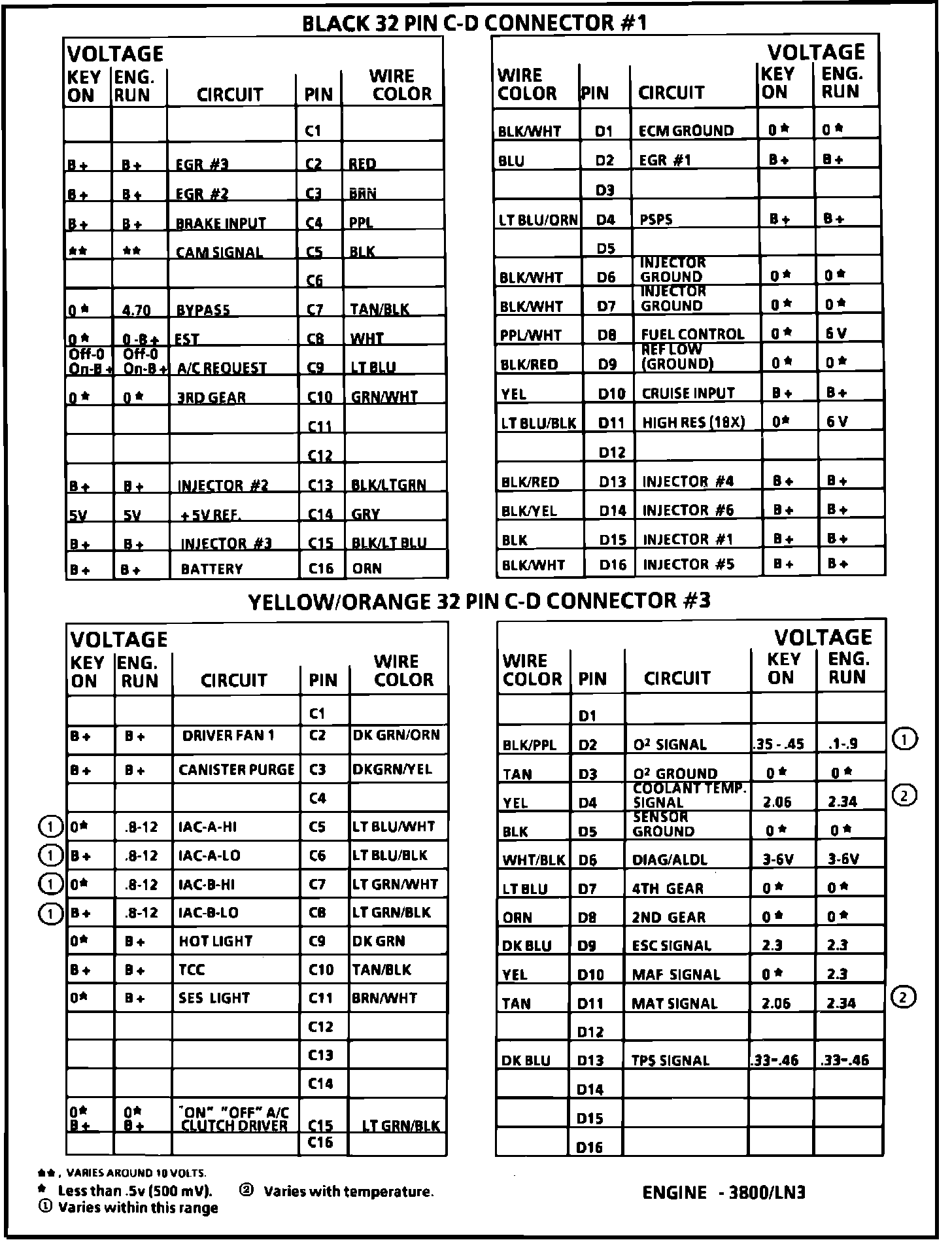 ECM Connector Terminal Identification And Voltage Specification (Part 2 Of 2):