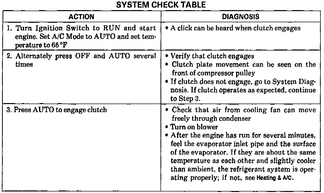 ^ Use the illustrated System Check Table as a guide to normal operation of the compressor controls.