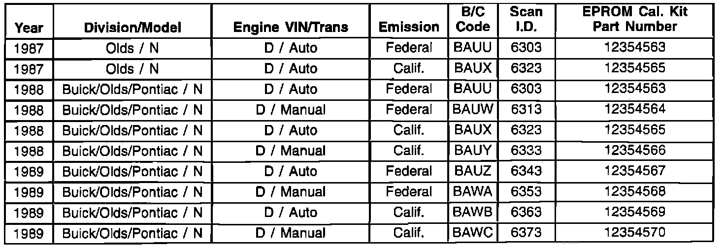 An ECM Calibration Kit is required when replacing 1987-89 2.3L (VIN D) engines with a 1992-94 GM Goodwrench engine. This kit contains a new EPROM (MEM-CAL), a crankcase vent hose connector, instruction sheet, ECM PROM (MEM-CAL) access door label and two (2) 10 mm exhaust manifold retaining nuts that are required to adapt the 1992-94 engine to the 1987-89 applications.