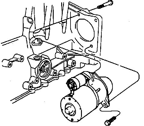 6. Disconnect electrical connections and remove starter by lifting out between intake manifold and radiator.