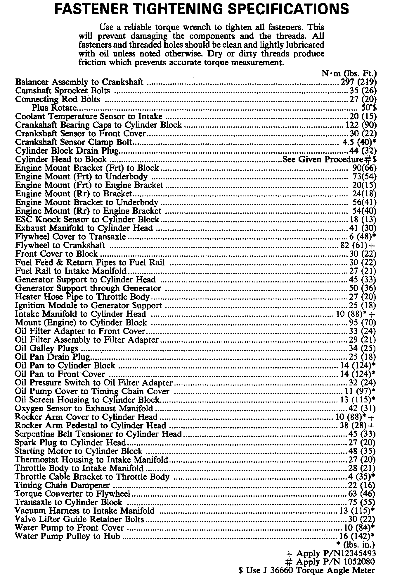 Torque Specifications: