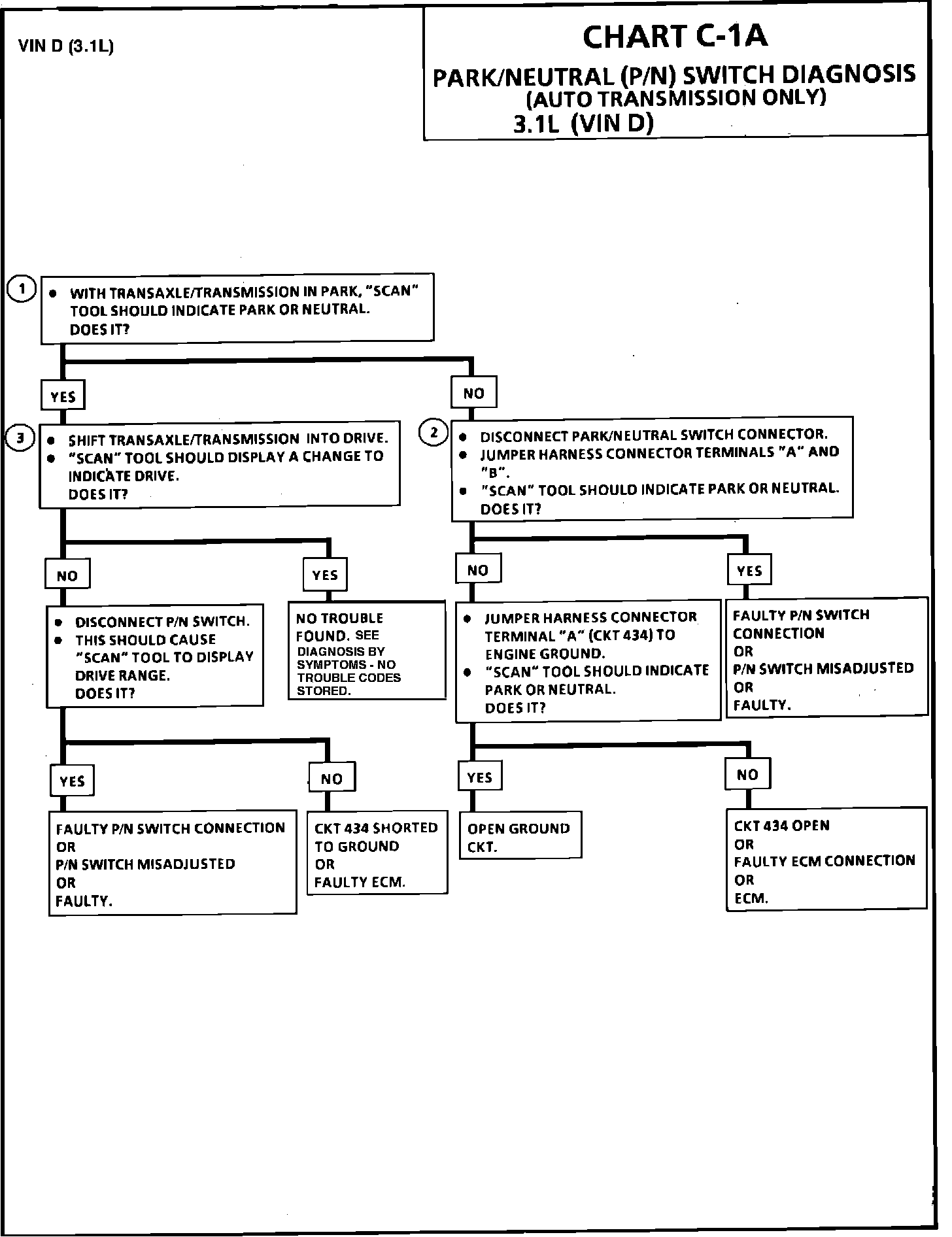 CHART C-1A - PARK/NEUTRAL SWITCH DIAGNOSIS (AUTO TRANS. ONLY)