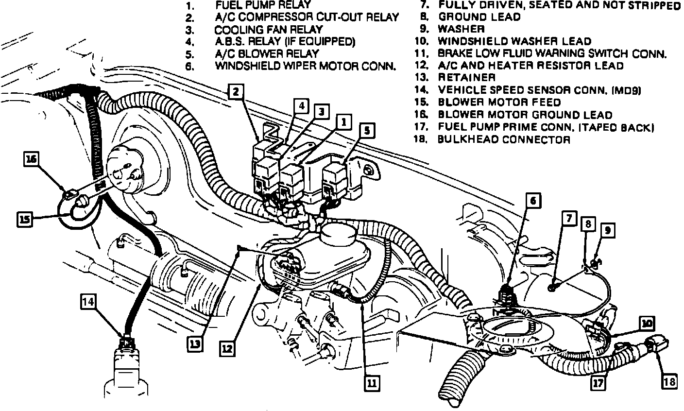 17 = FUEL PUMP PRIME CONN. (TAPED BACK)