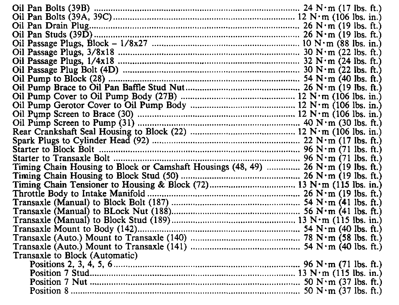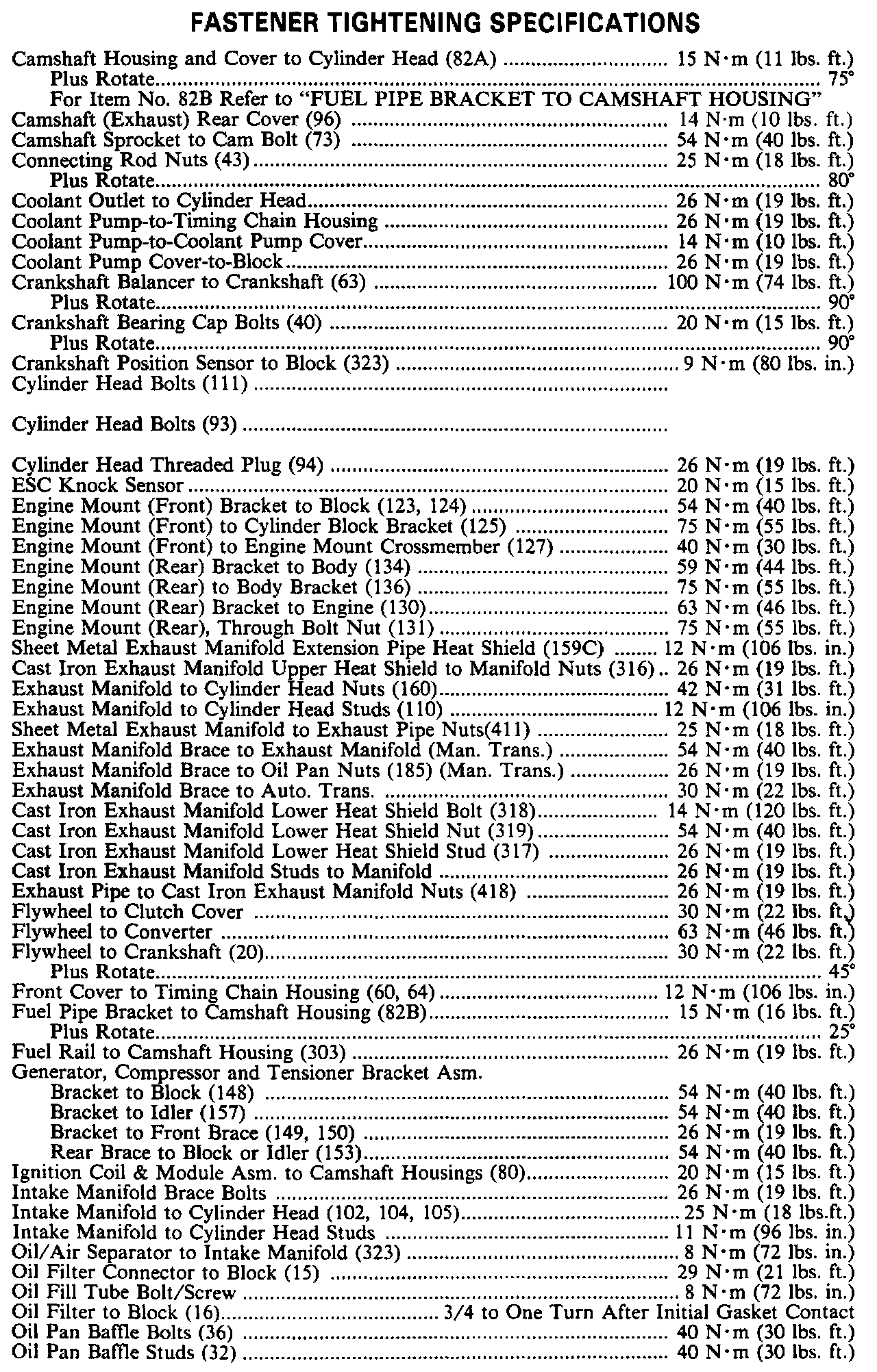 Continued Torque Specifications:
