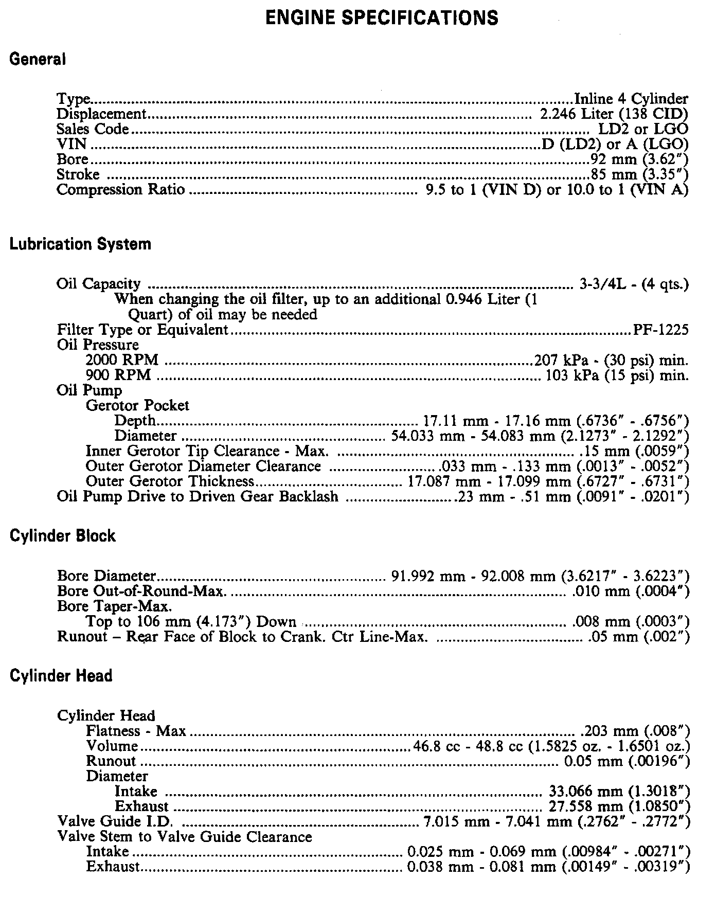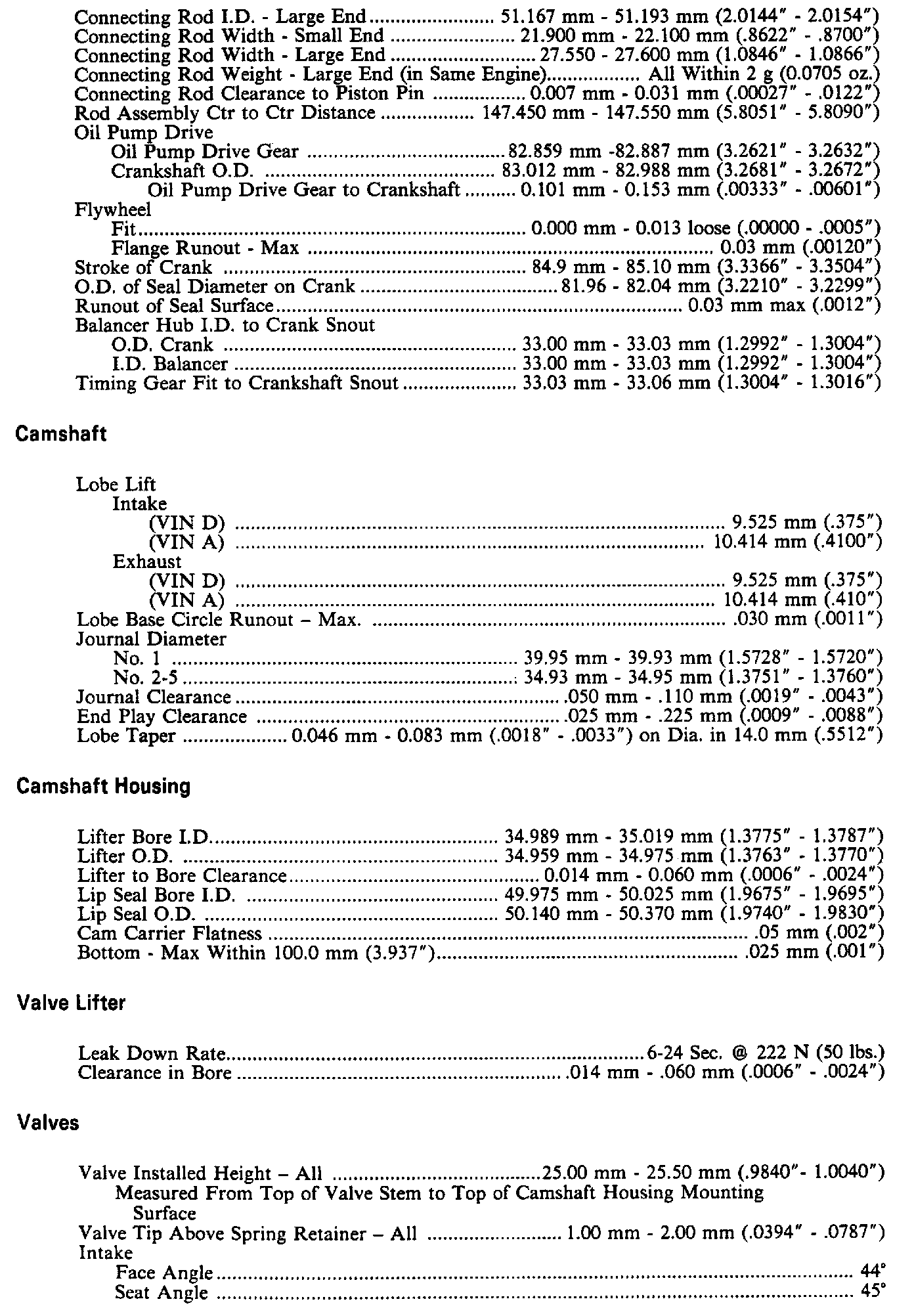 Continued Engine Specifications: