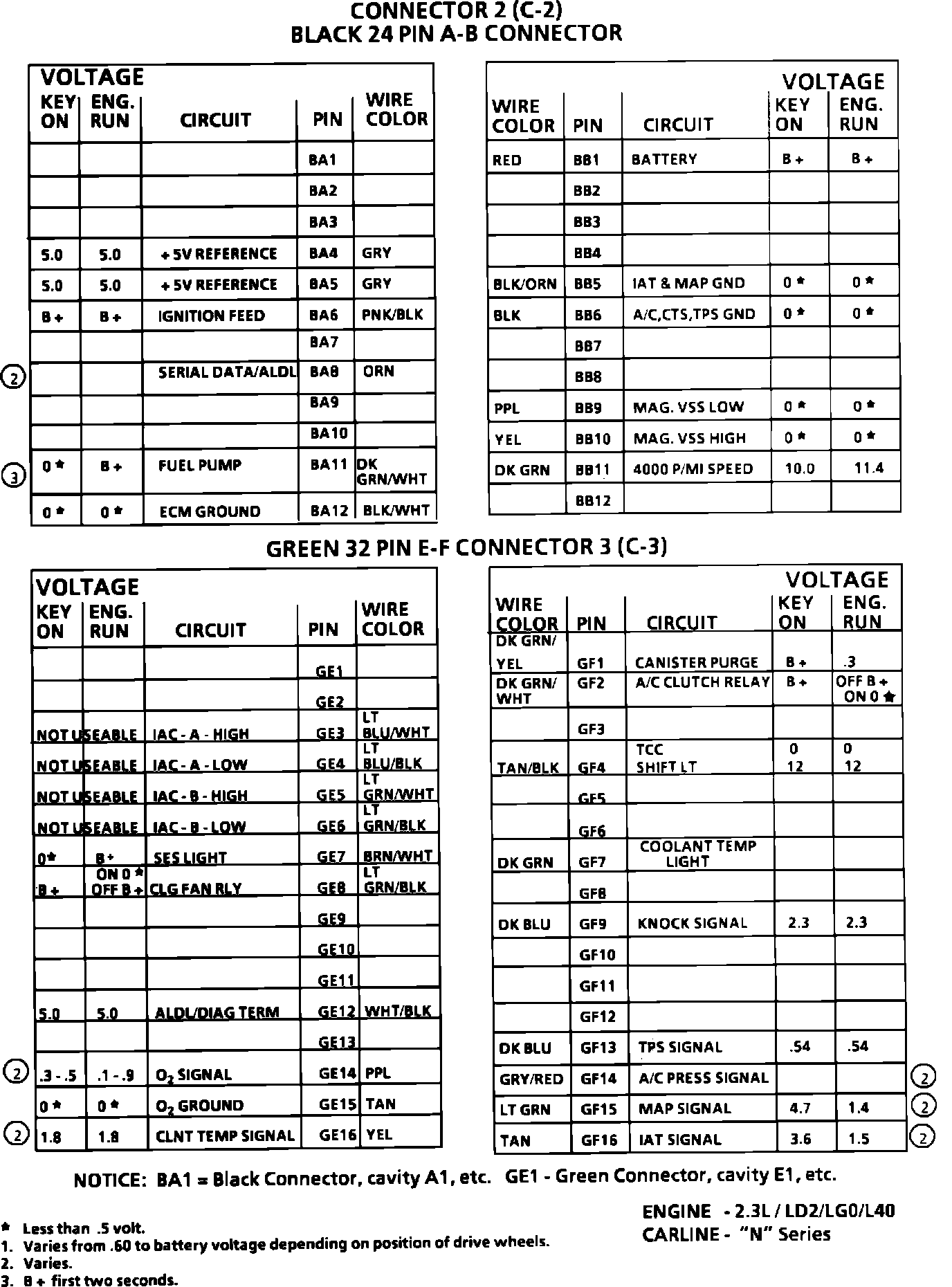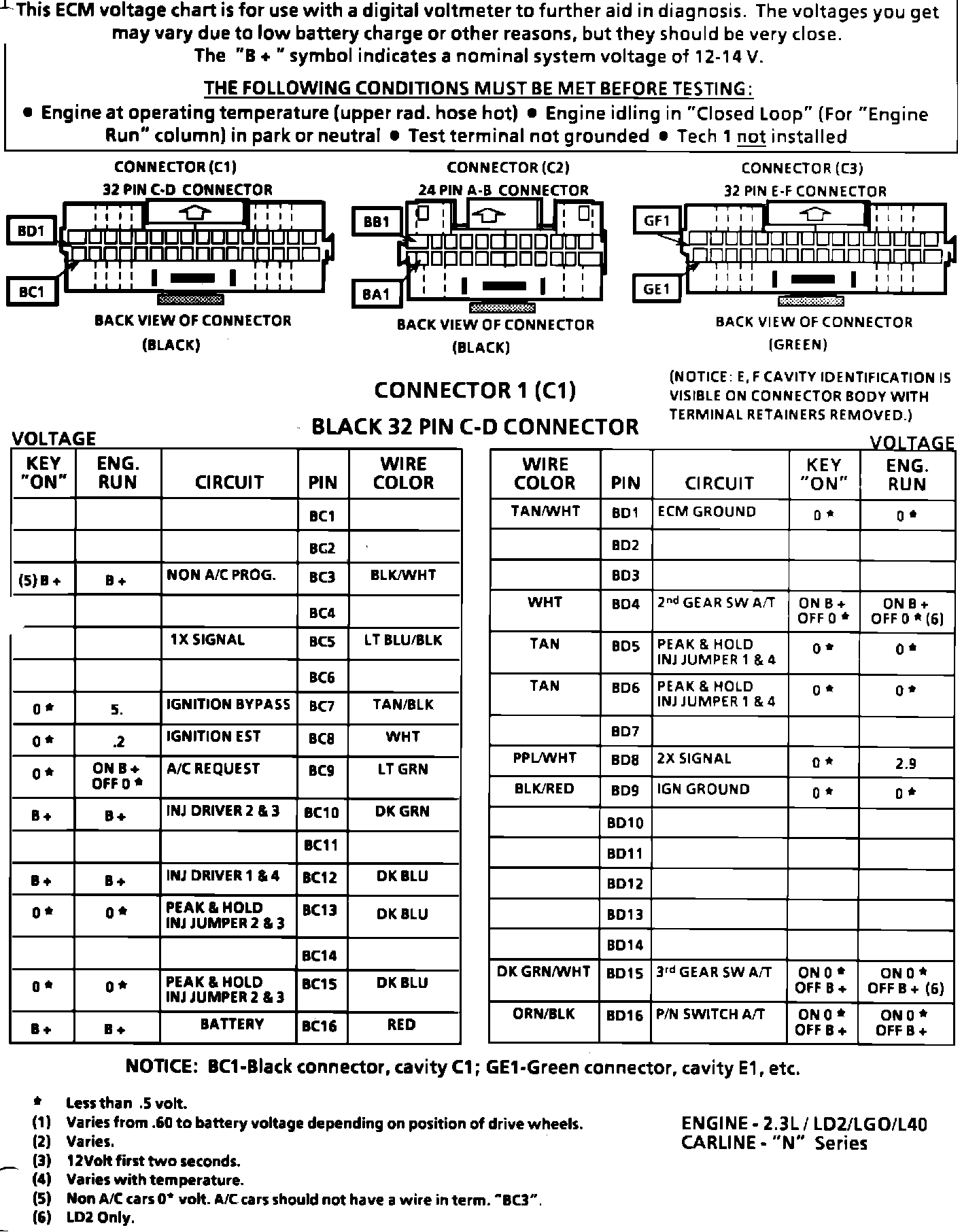 ECM PINOUT/Terminal I.D. Chart "N" Carline (2 Of 2):