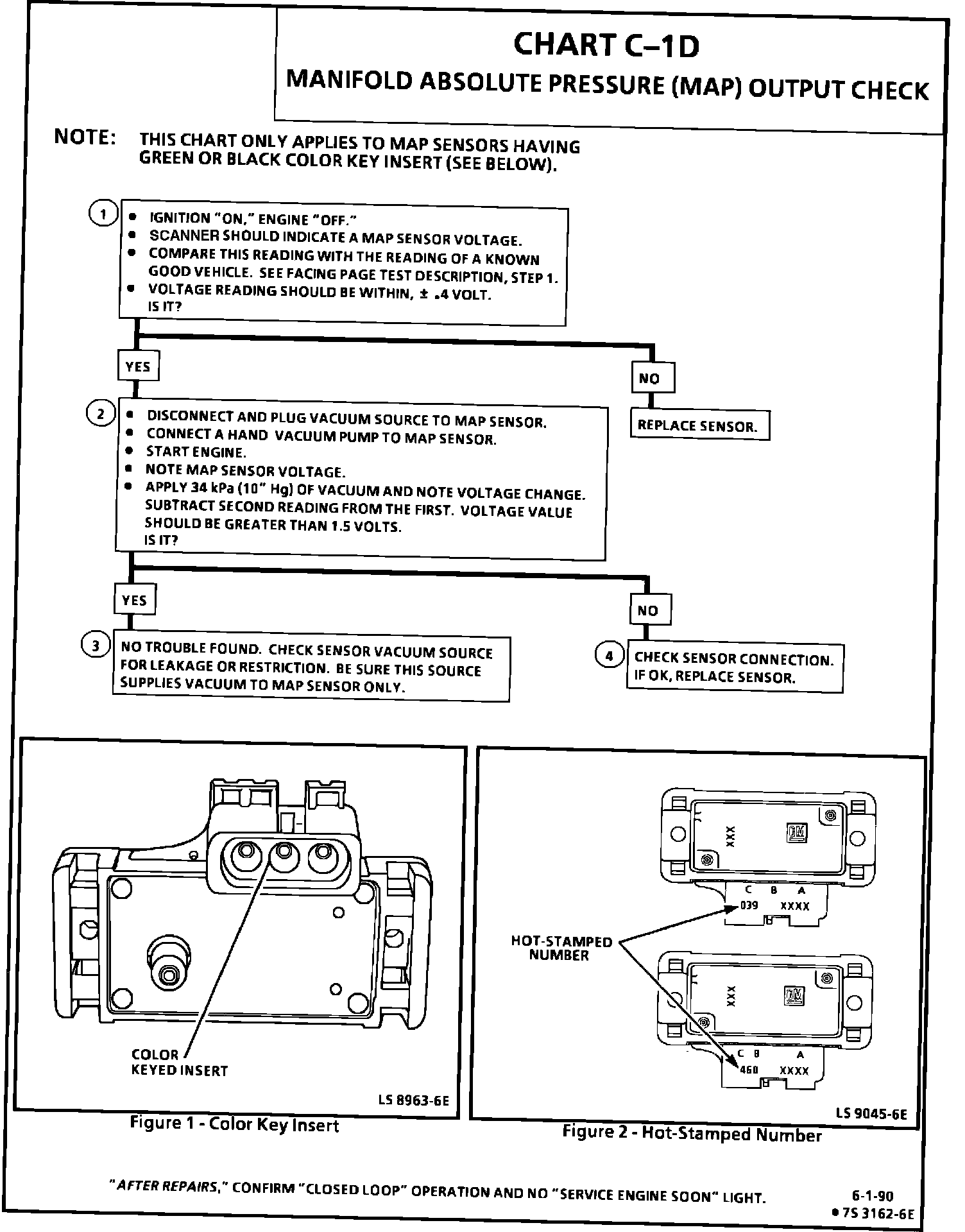 1. When comparing Scan readings to a known good vehicle, it is important to compare vehicles that use a MAP sensor having the same color insert or having the same "Hot Stamp" number. See figures on Chart.