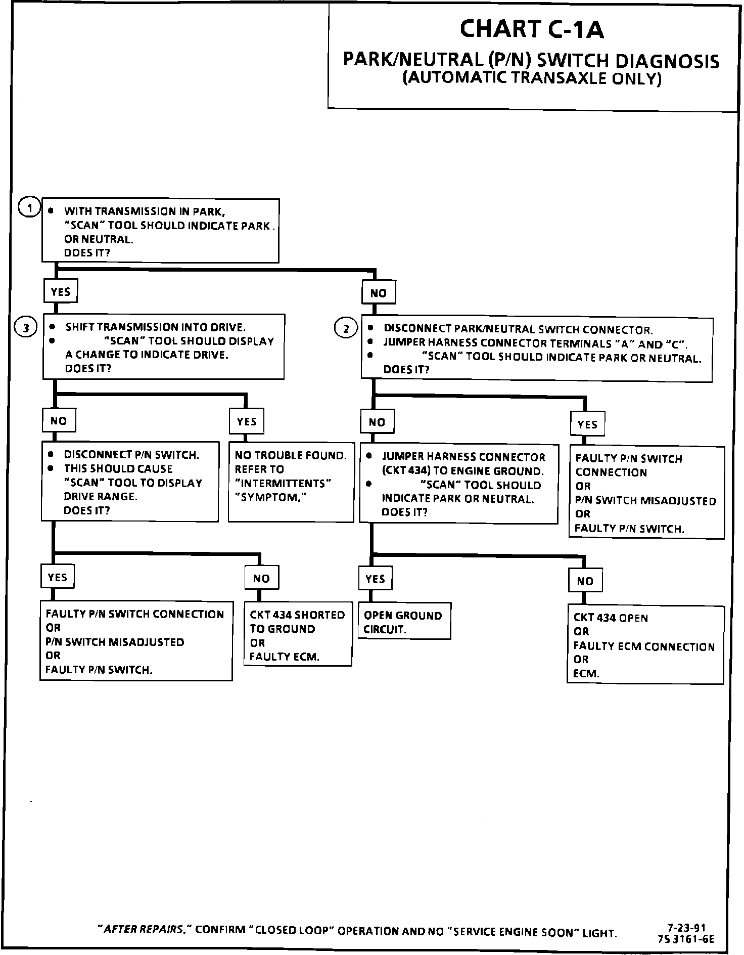 1. Checks for a closed switch to ground in park position. Different makes of "Scan" tools will read P/N differently. Refer to operators manual for type of display used for a specific tool.