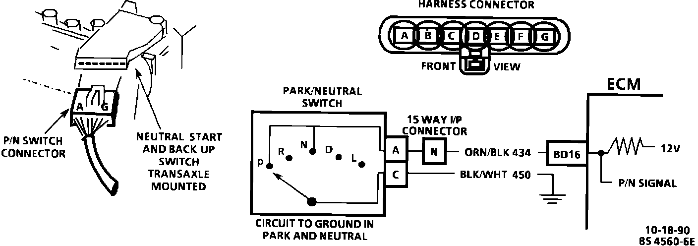 The Park/Neutral Switch contacts are a part of the Neutral Start Switch and are closed to ground in park or neutral and open in drive ranges and reverse.