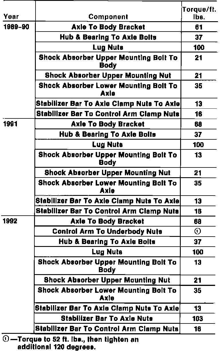 Tightening Specifications: