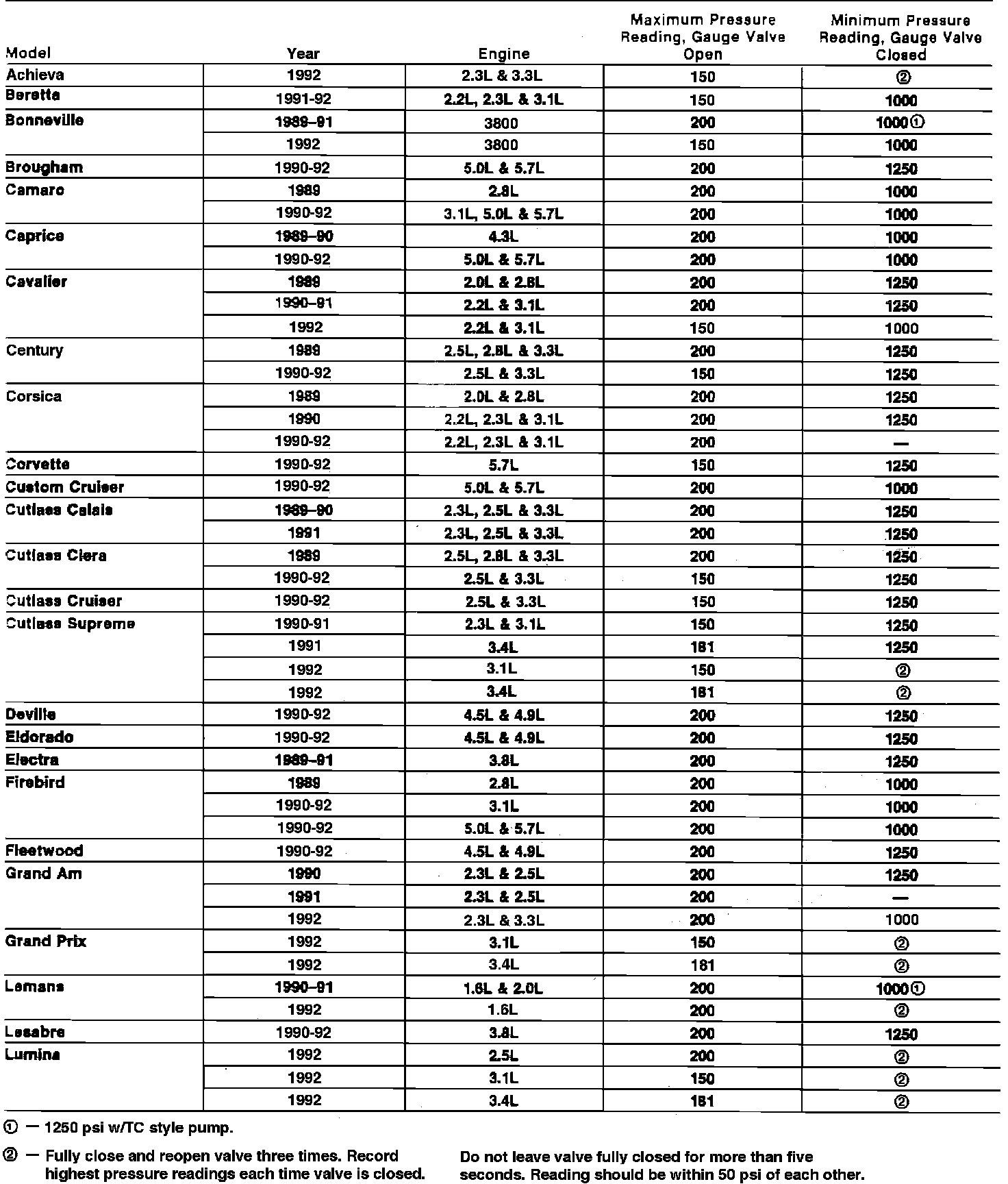 Power Steering Pressure Specifications: