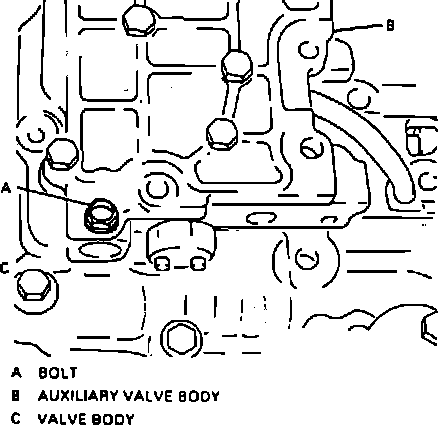 8. Remove bolt ``A'' and separate auxiliary valve body from the valve body.
