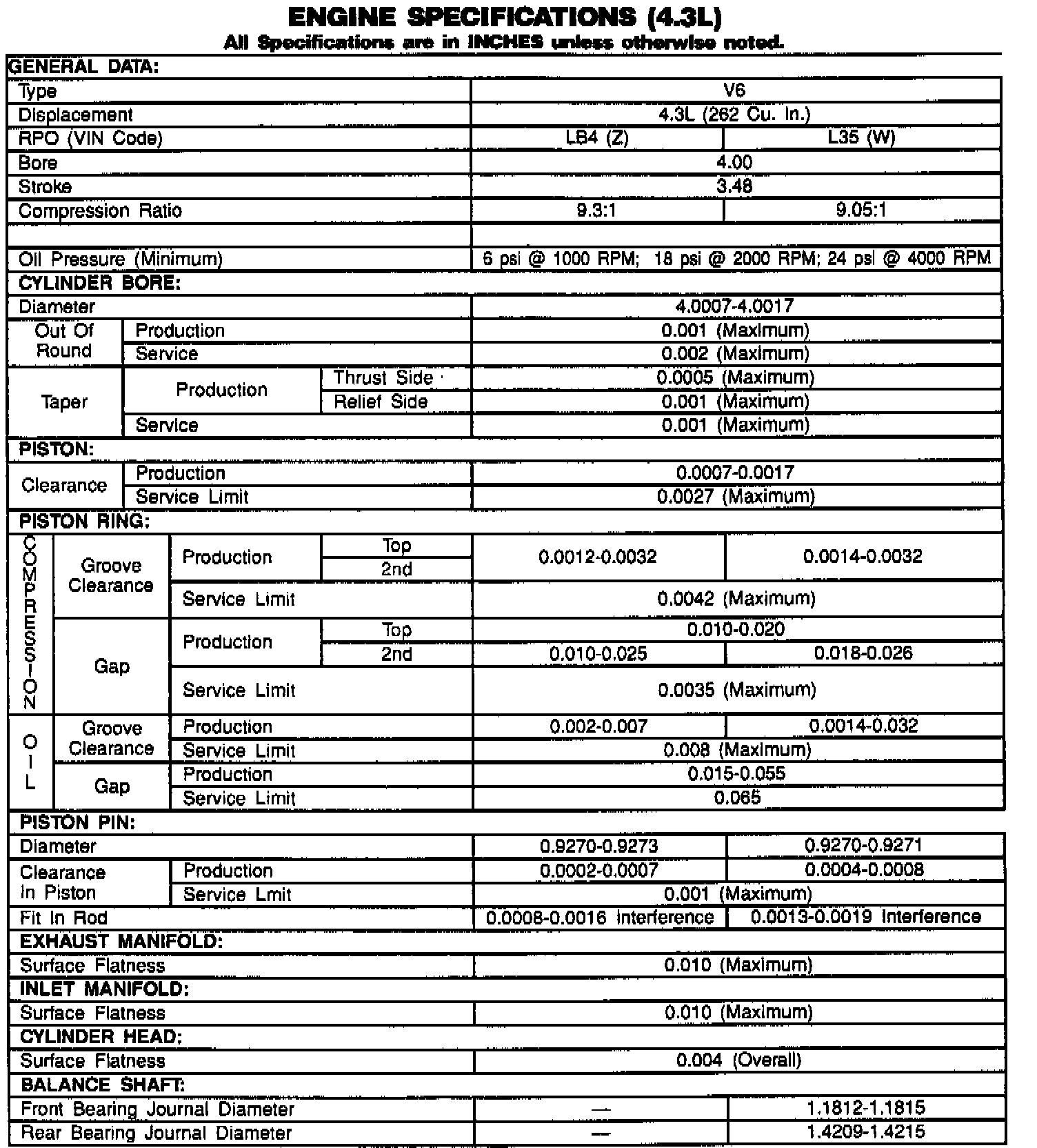 Bravada V6-262 4.3L VIN Z