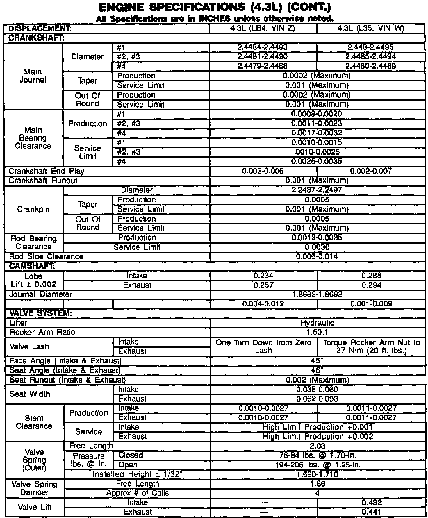 Engine Specifications (continued):
