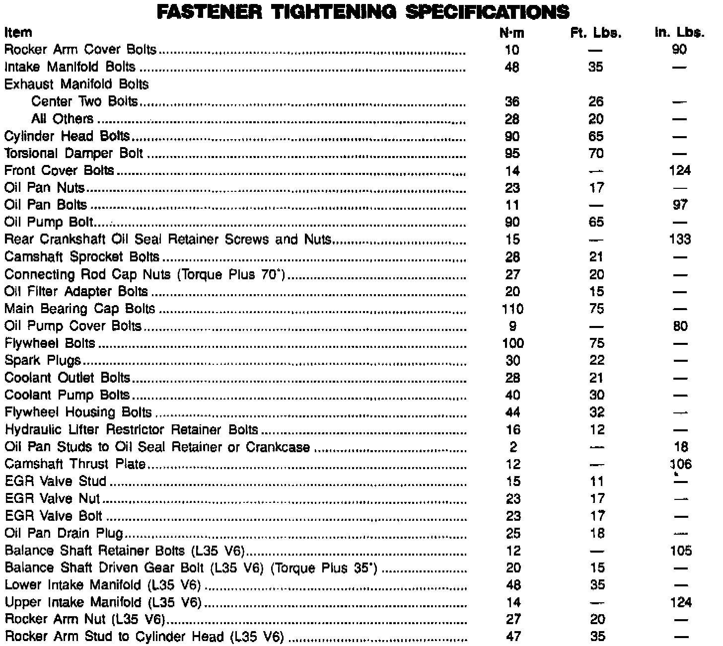 Torque Specifications: