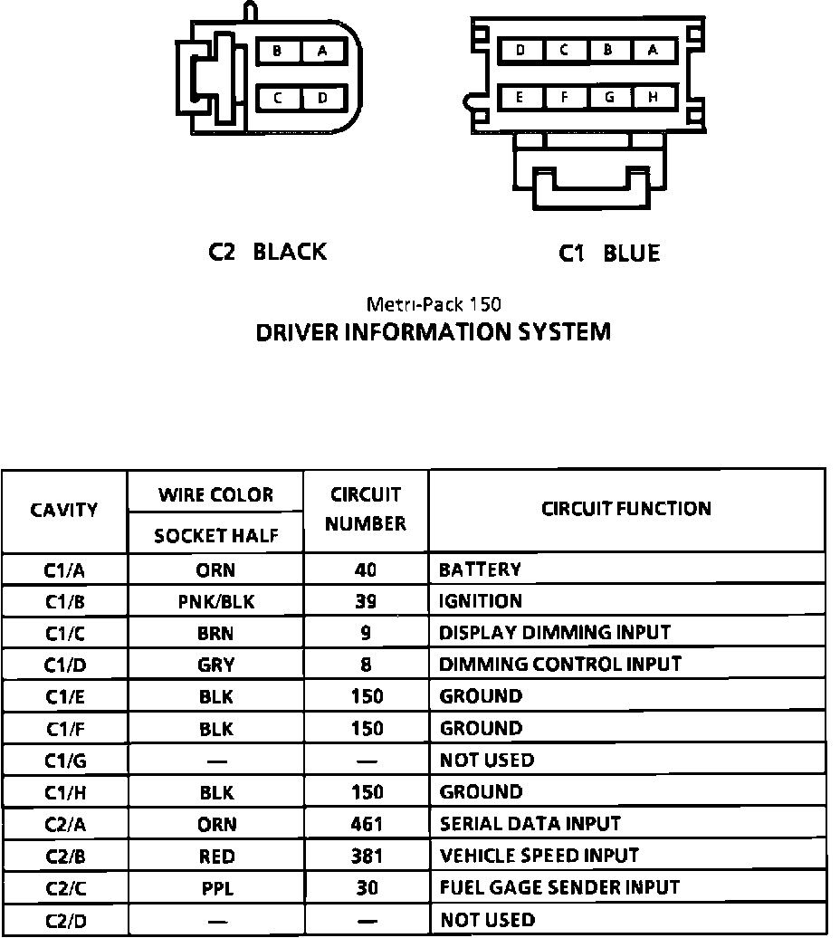 Driver Information System Connector Face: