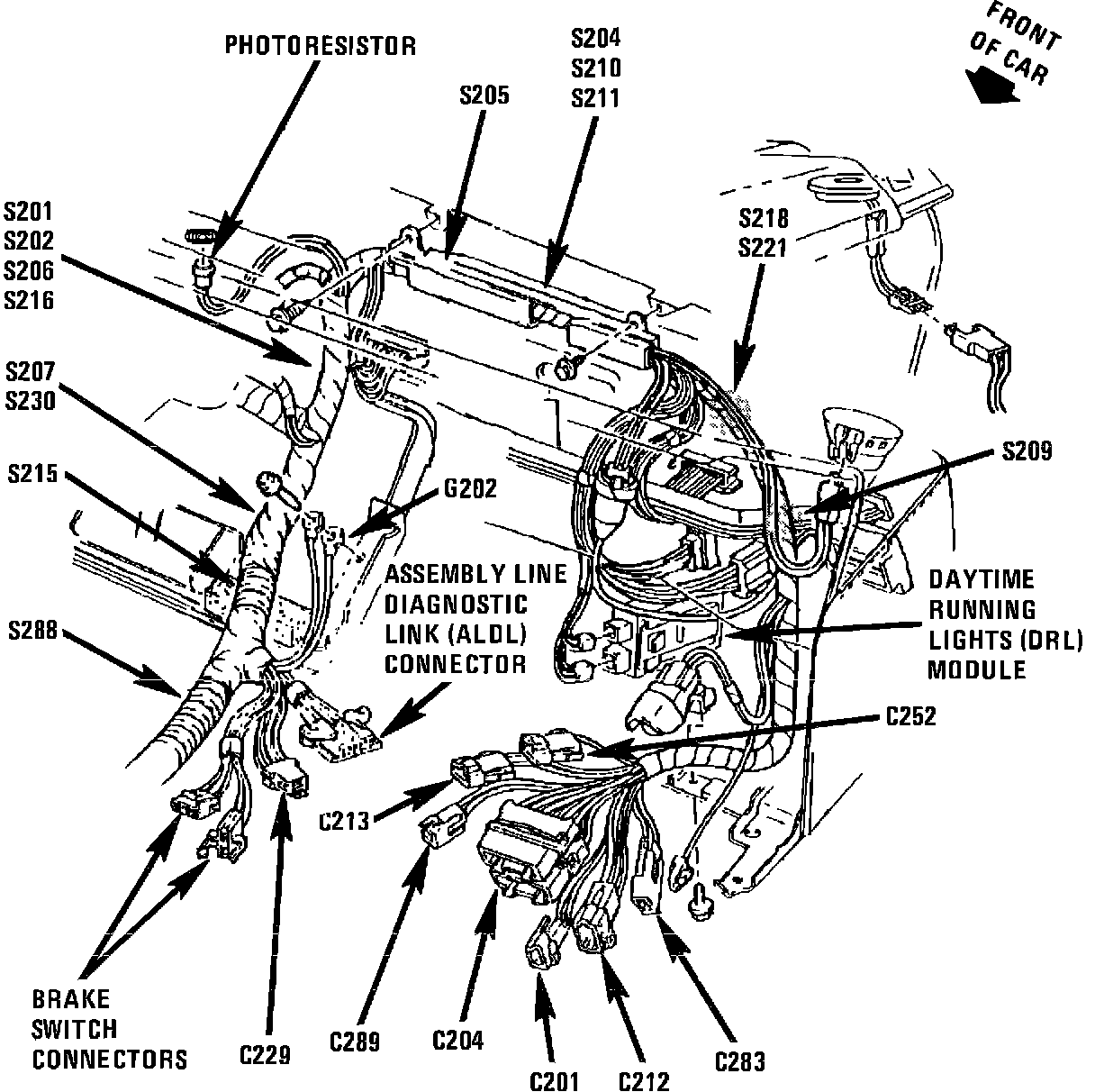 The Daytime Running Lights Module is located behind I/P, below LH speaker