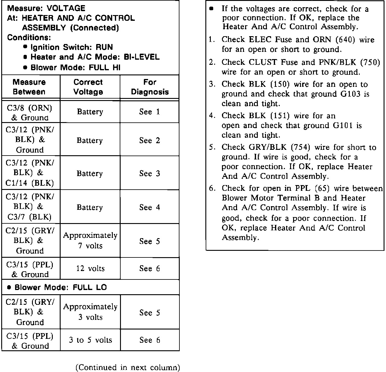 Test C: Heater And A/C Control Assembly Test: