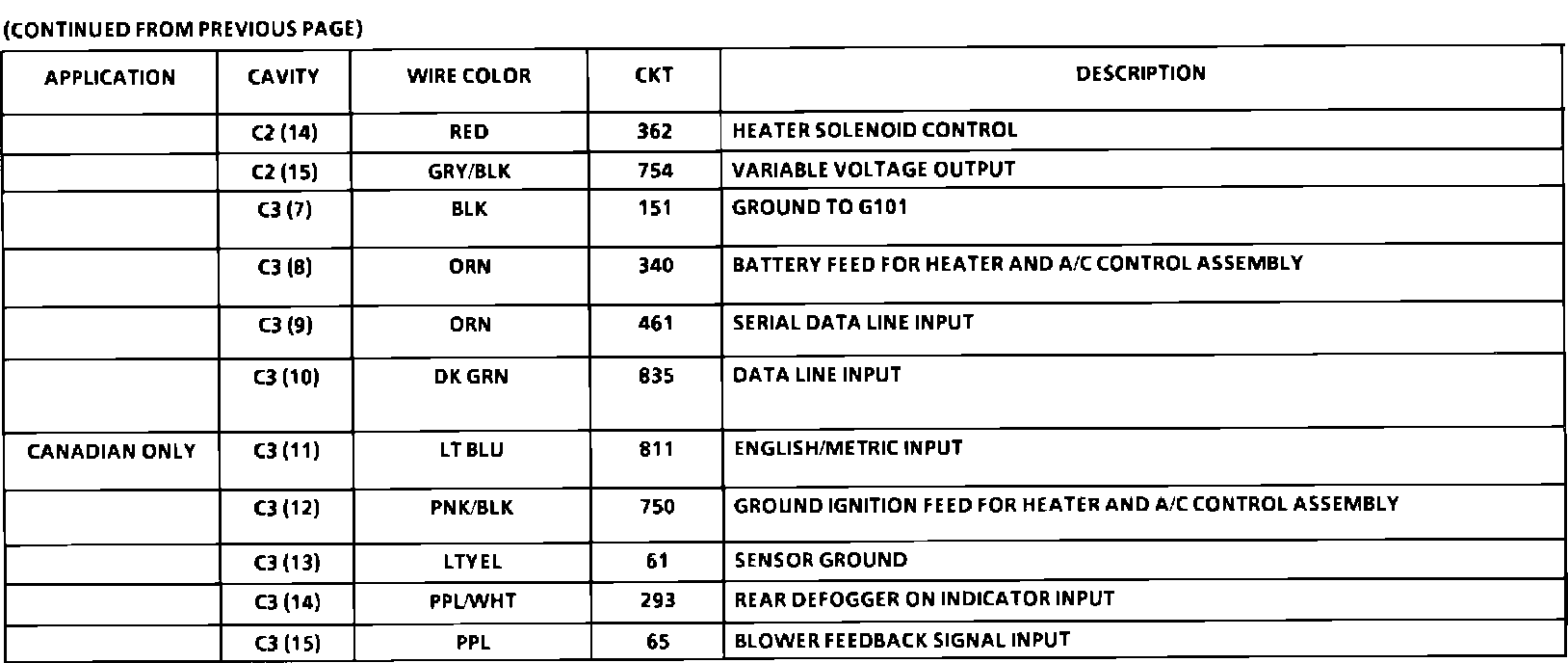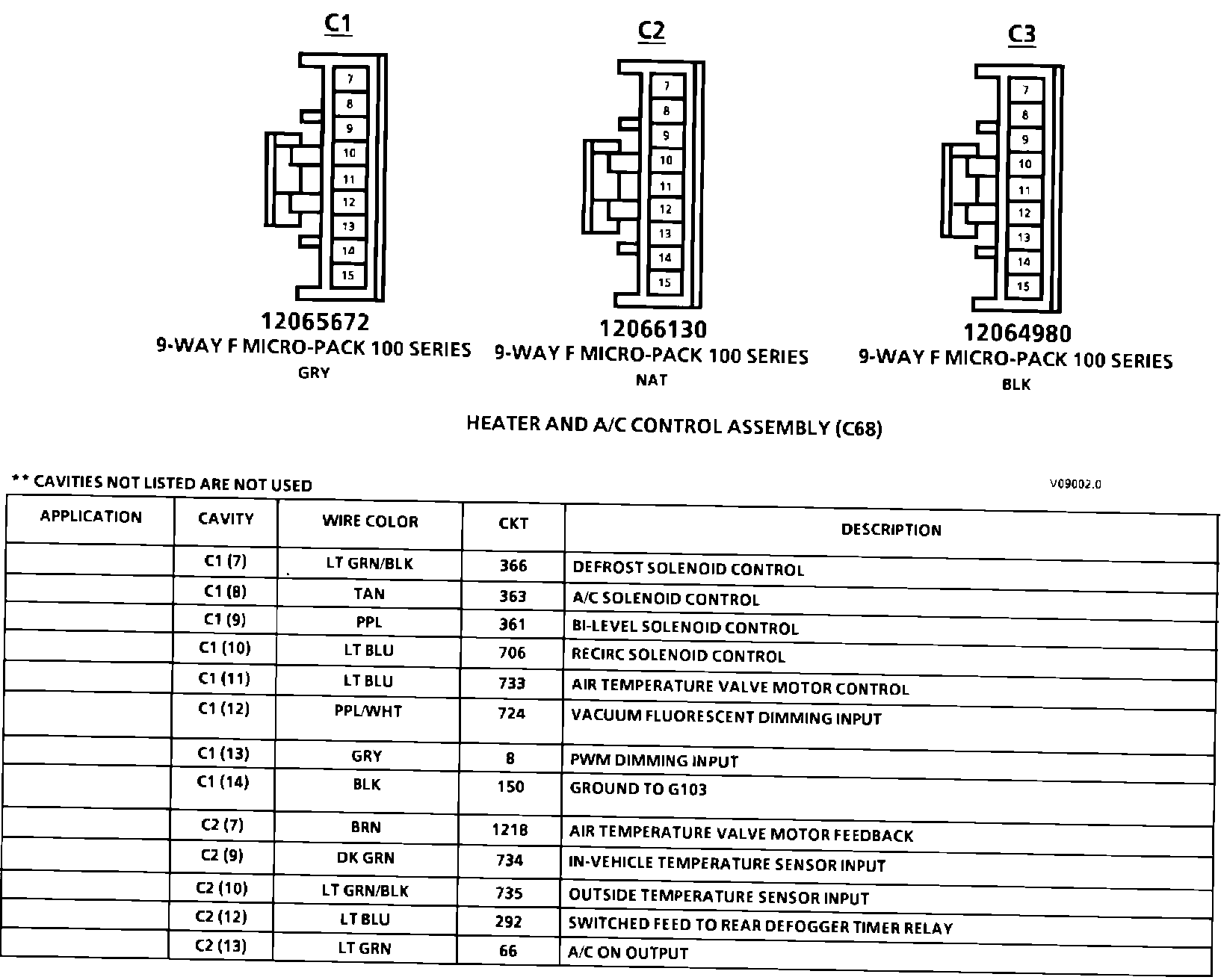 Heater And A/C (Automatic) Control Assembly Connector Face: