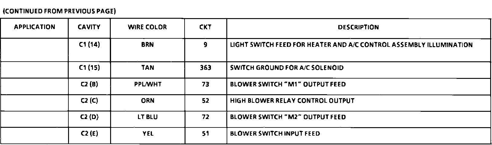 Heater And A/C Control Assembly Connector Face: