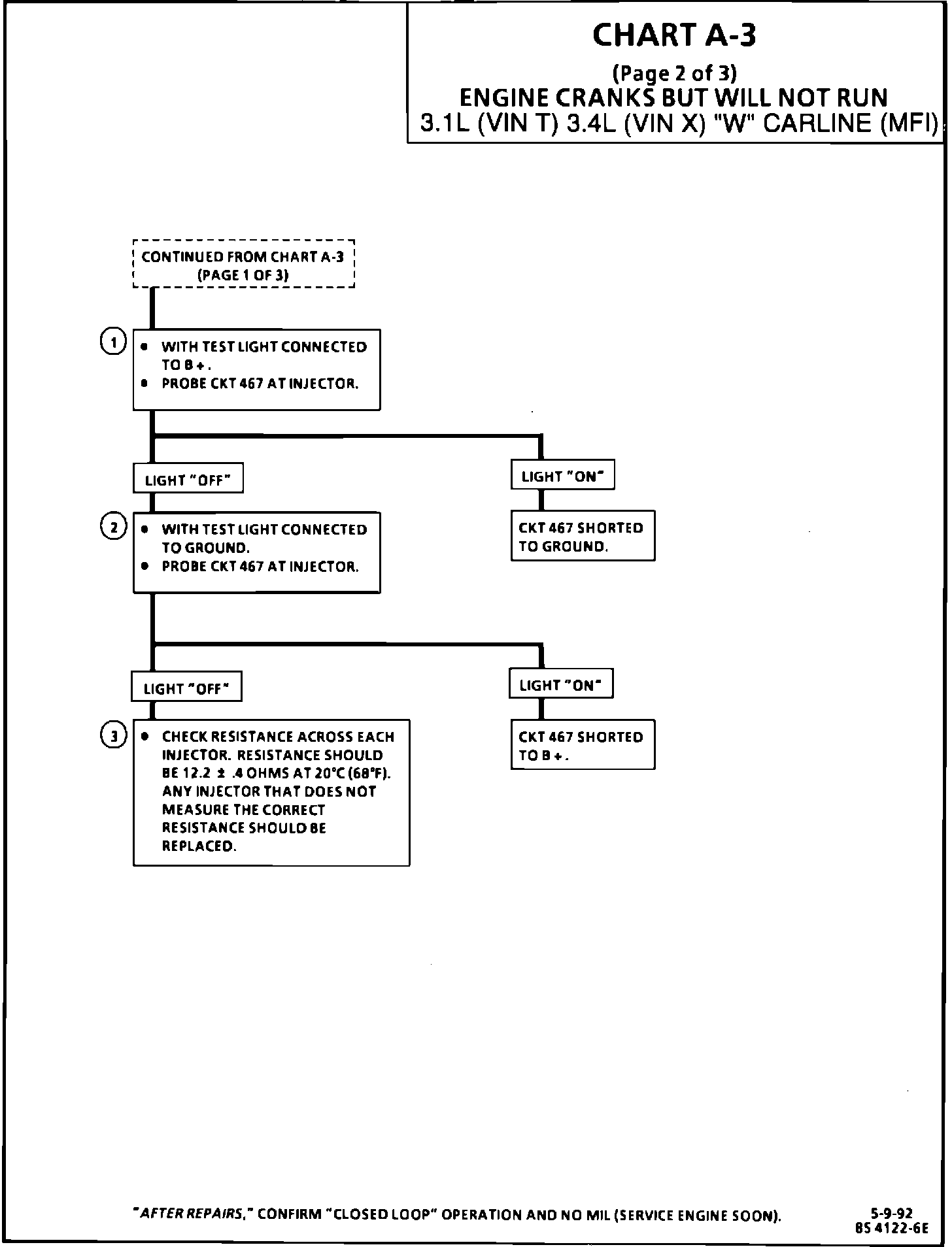 This Bulletin contains revisions to Section 6E3 of the 1991-92 "W" Carline Service Manuals The 3.1L (VIN T) and 3.4L (VIN X) Engine Cranks But Will Not Run (Chart A-3) has been revised. These revised pages will replace the current Chart A-3 pages in the following service manuals.