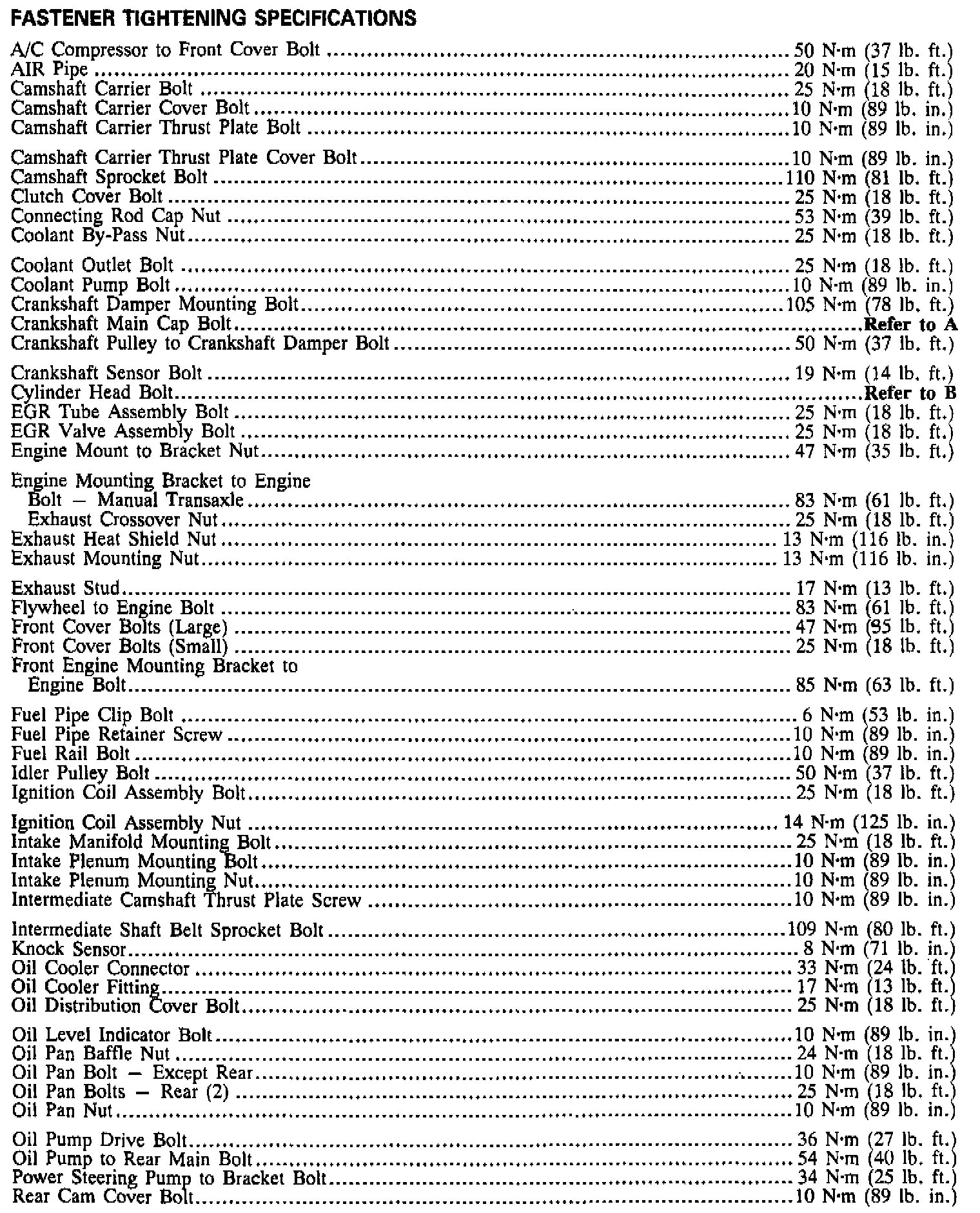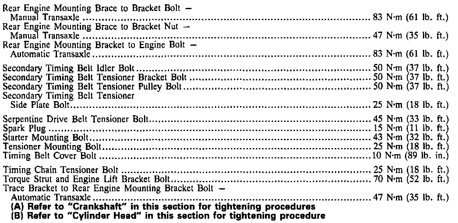 Torque Specifications (continued):