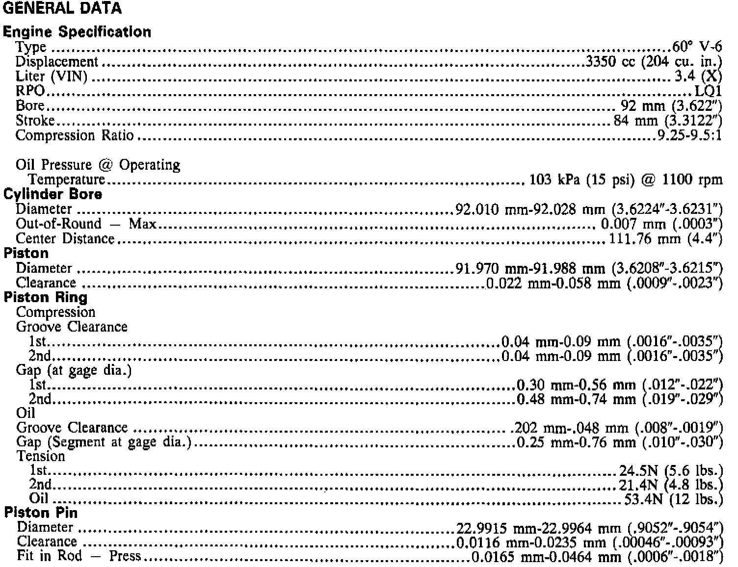 Engine Specifications: