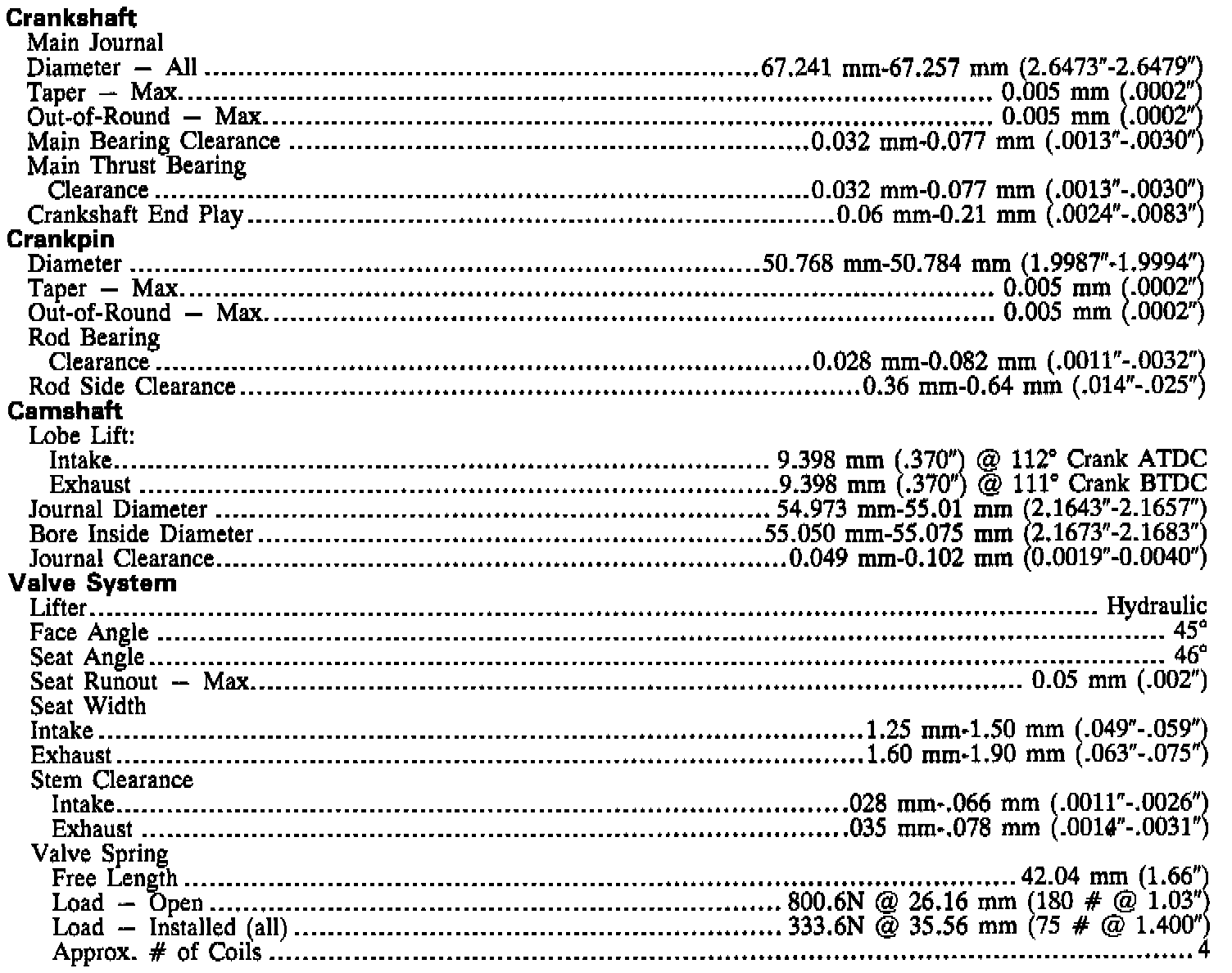 Engine Specifications (continued):