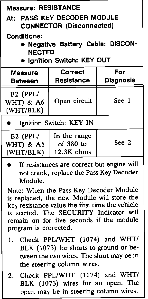 Test B: Pass Key Decoder Module Test (Table 2):