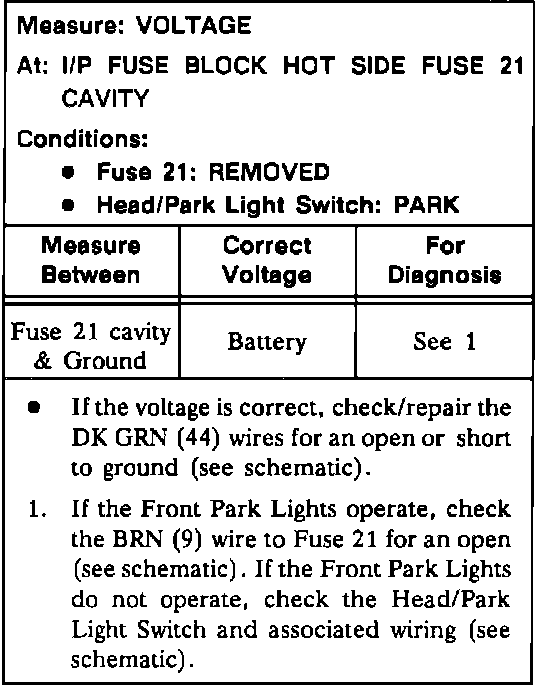 Test A: I/P Fuse Block Voltage Test: