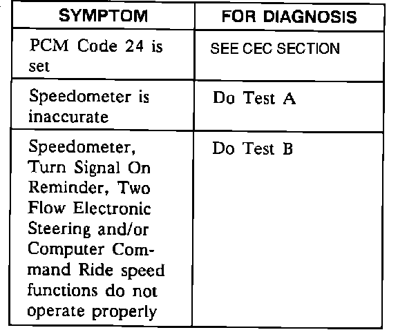 Vehicle Speed Sensor Symptom Diagnosis Chart: