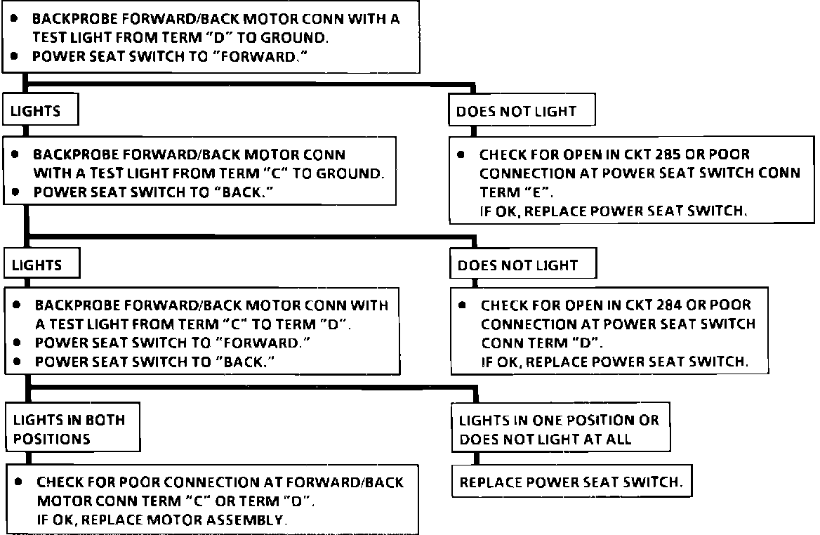 Entire Seat Will Not Go "forward" Or "Back," "Up" Or "Down" Functions Operate Normally:
