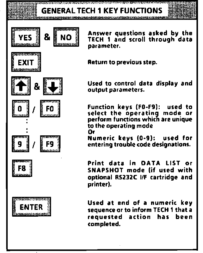 Fig. 2 Tech 1 Scan Tool Key Functions: