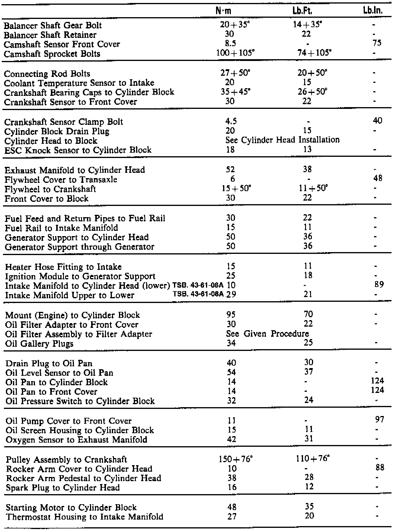 Torque Specifications: