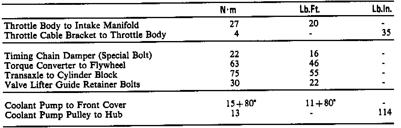 Torque Specifications (continued):