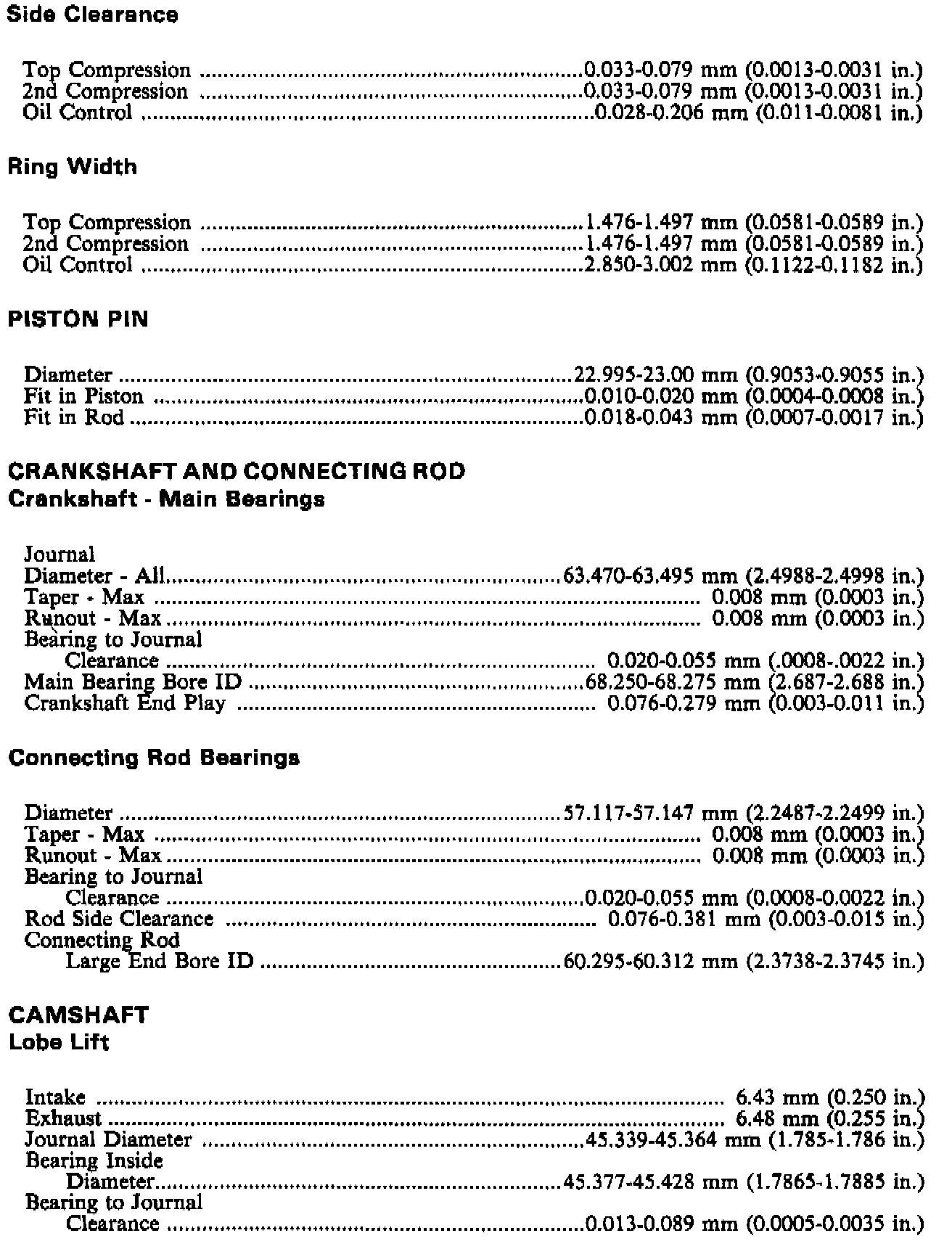 Engine Specifications (continued):