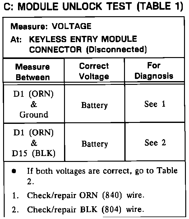 Test C: Module Unlock Test - Table 1