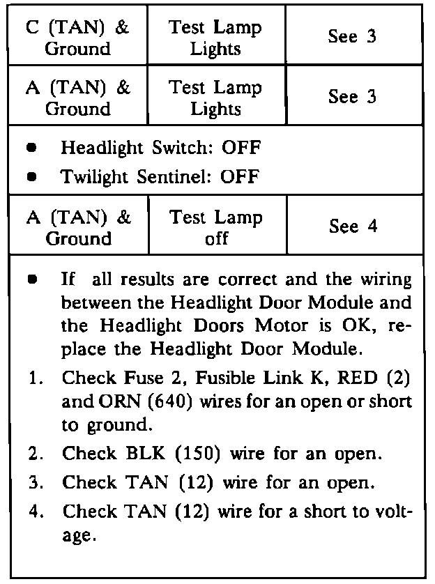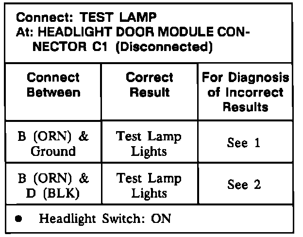 Do the Headlight Door Module Test if the Headlight Doors do not operate properly.HEADLIGHT DOOR MODULE TEST: