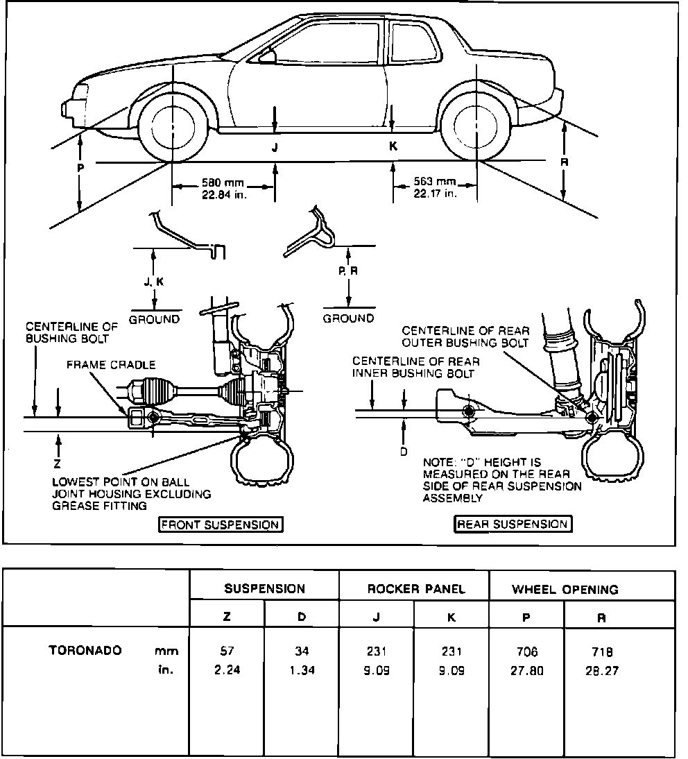 Trim heights are checked with tires at recommended pressure, fuel tank at capacity, front seat in rear position, no passengers and trunk empty, except for spare tire and jack.