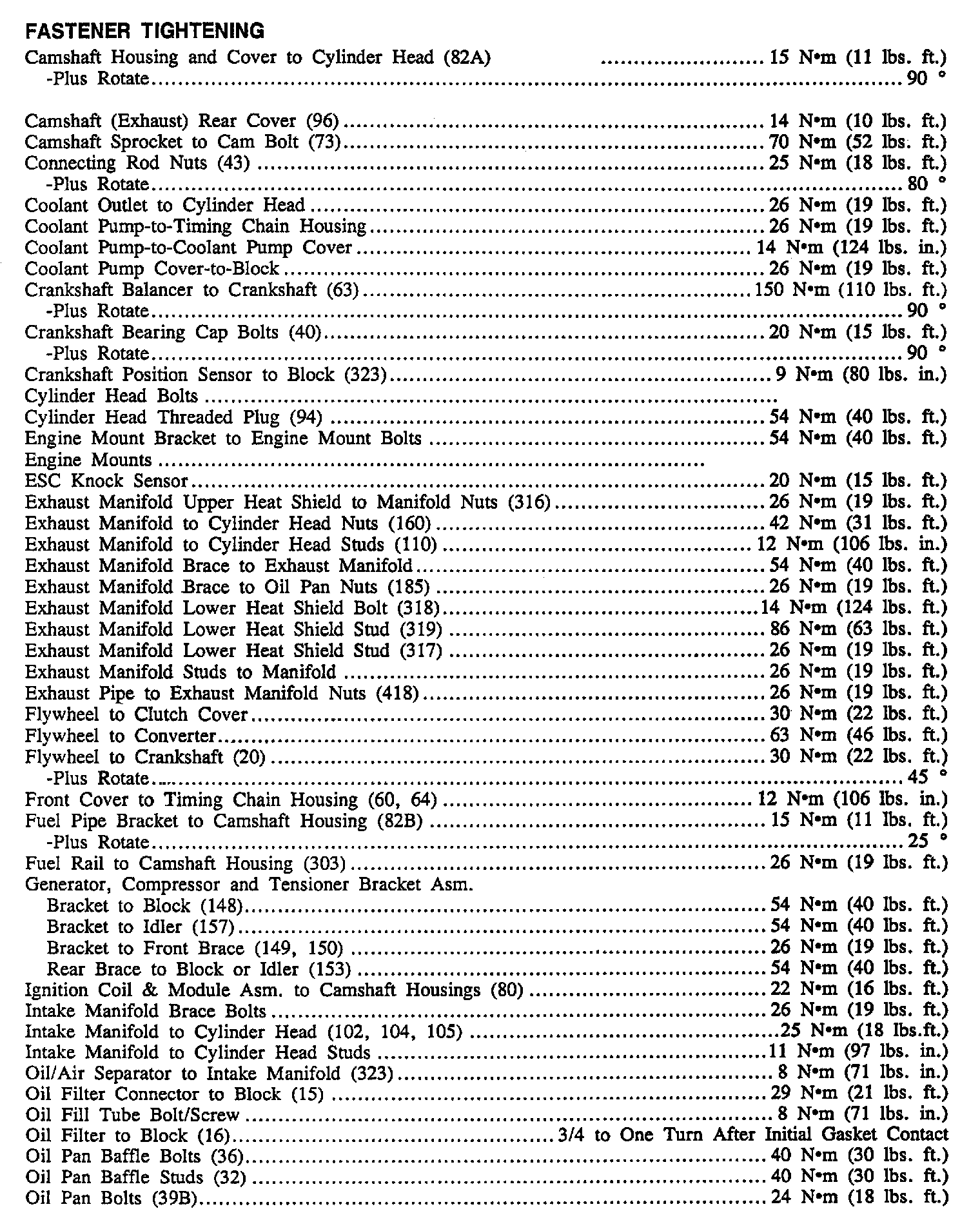 Continued Torque Specifications: