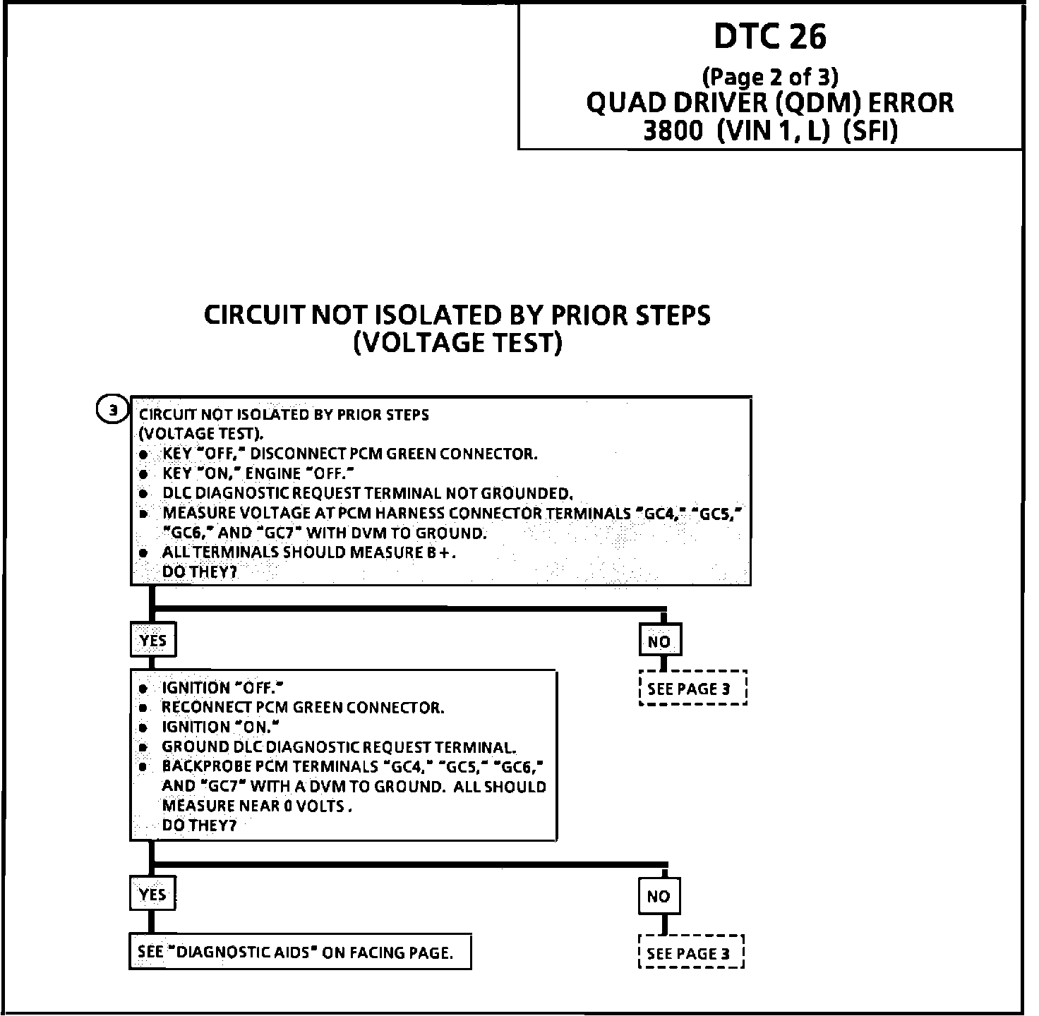 This bulletin replaces the DTC 26 Diagnostic Chart (Pages 2 of 3 and 3 of 3) in Section 6E3, "Driveability and Emissions". The revised charts address the possibility of a faulty hot light circuit or cluster causing DTC 26 to set. Note that vehicles not equipped with a hot light (UB3, U2A, or UB7 clusters) have a resistor installed in the cluster to pull up the QDM driver circuit and simulate a hot light bulb; thus a faulty gage cluster may cause DTC 26 to set.