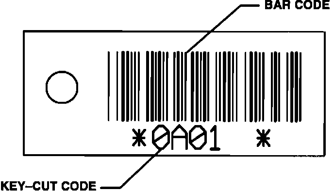 In addition to bar code information, printed key-cut codes will be included on the key tag. This information will replace the key-cut information which was previously stamped on the key knock-out plug. Please note that the key-cut codes on the label apply to the ignition keys only. Knock-out plugs will continue to be provided with door keys.