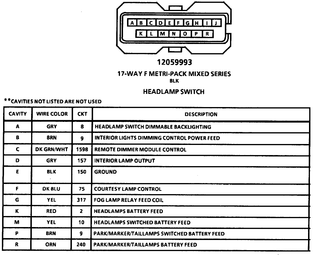 Connector Views: Headlamp Switch: