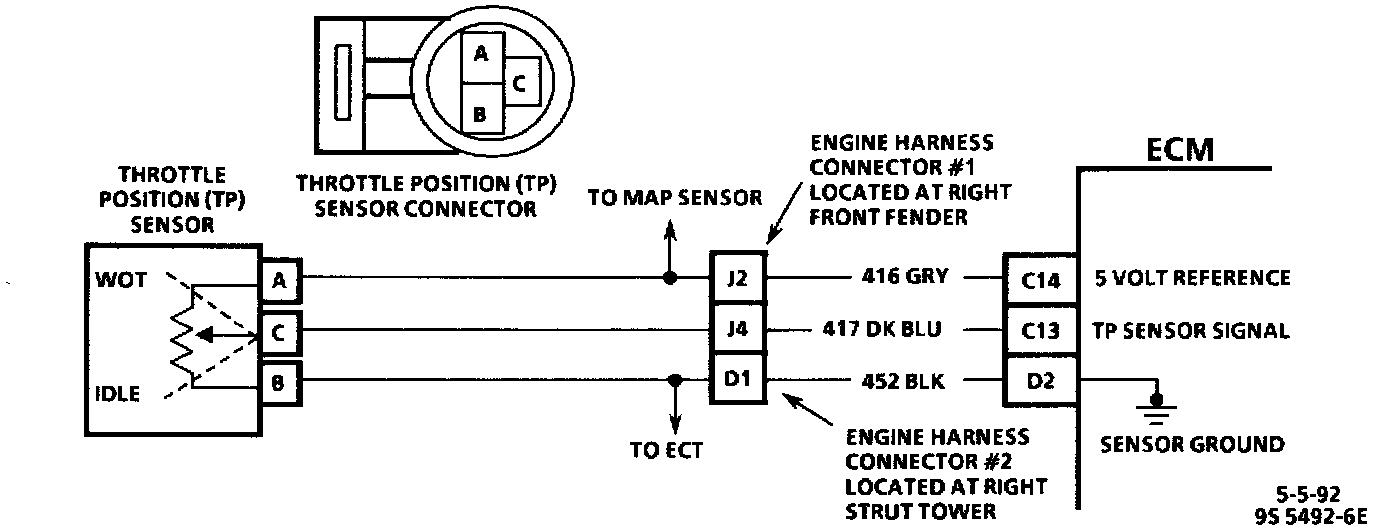 Throttle Position (TP) Sensor Wiring Circuit: