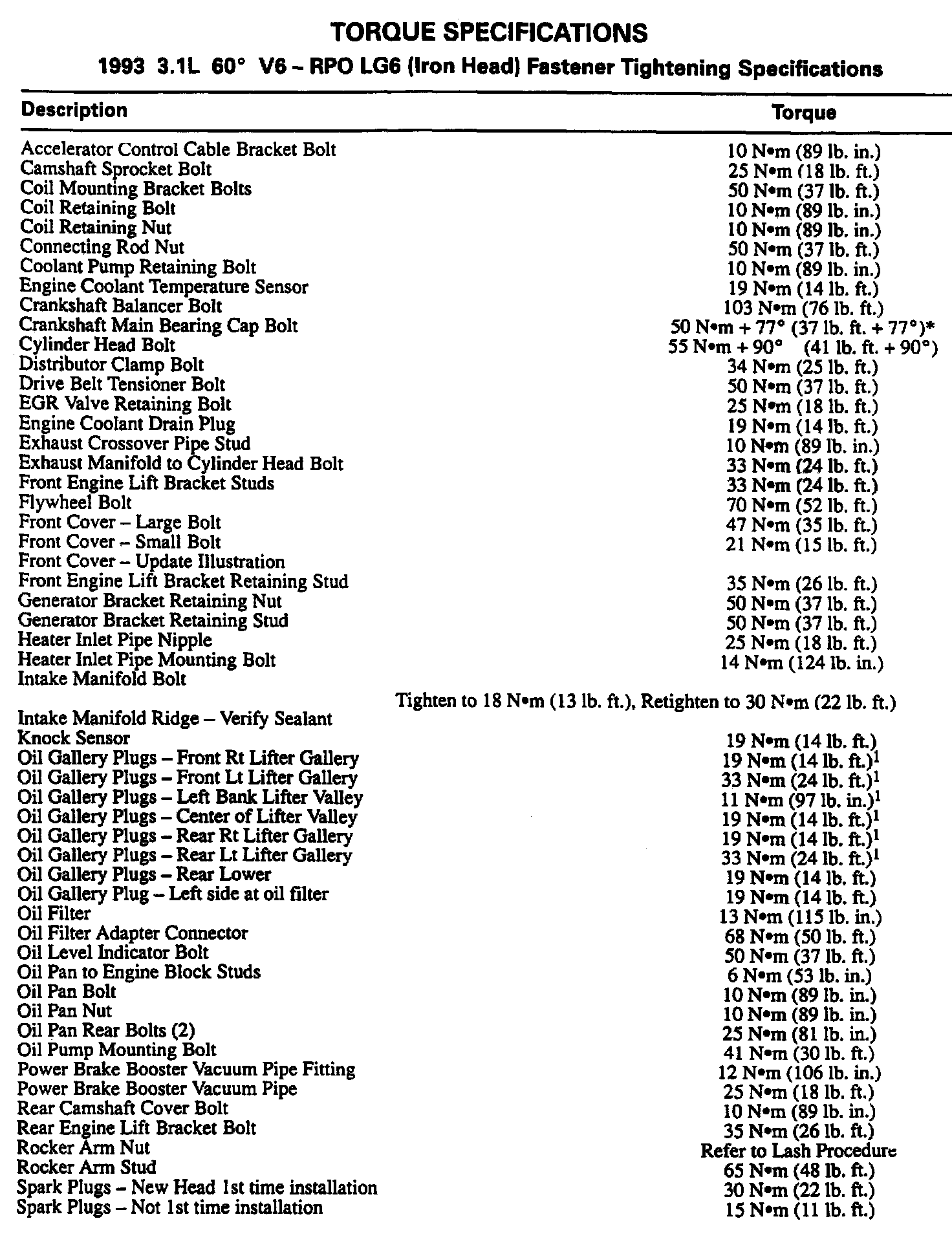Torque Specifications: