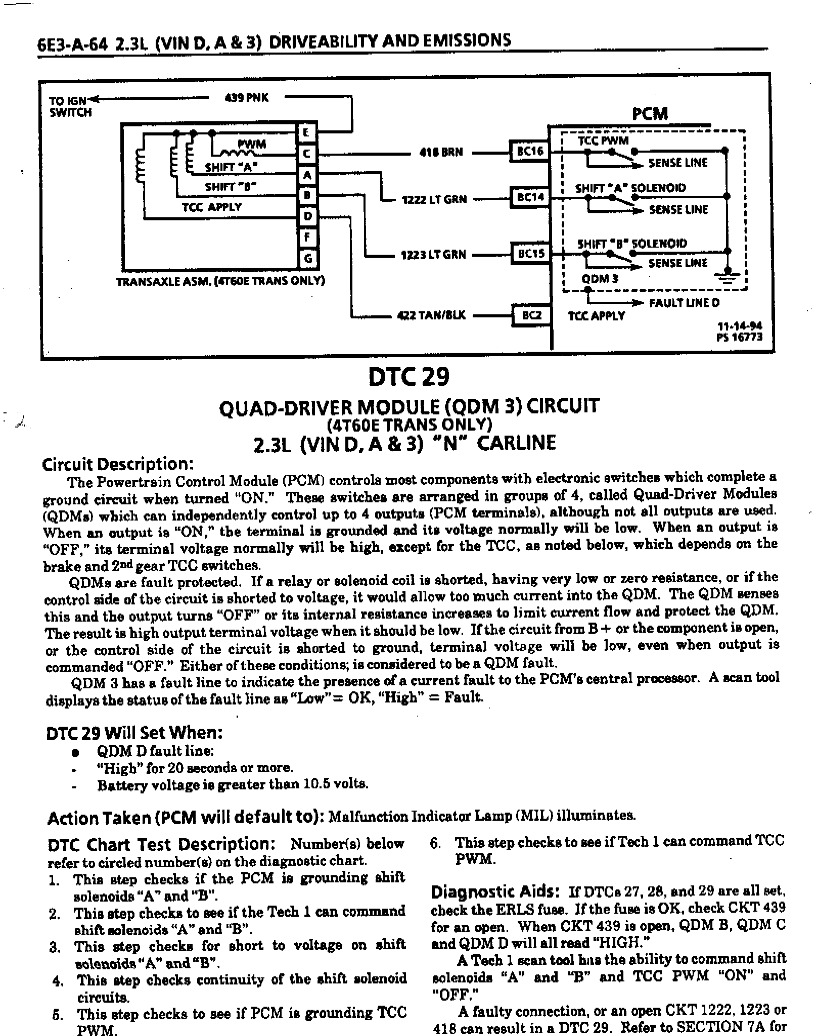 ^ 6E3-A-64 DTC 29 Quad-Driver Module (QDM 3) Circuit (4T6OE Trans. Only).