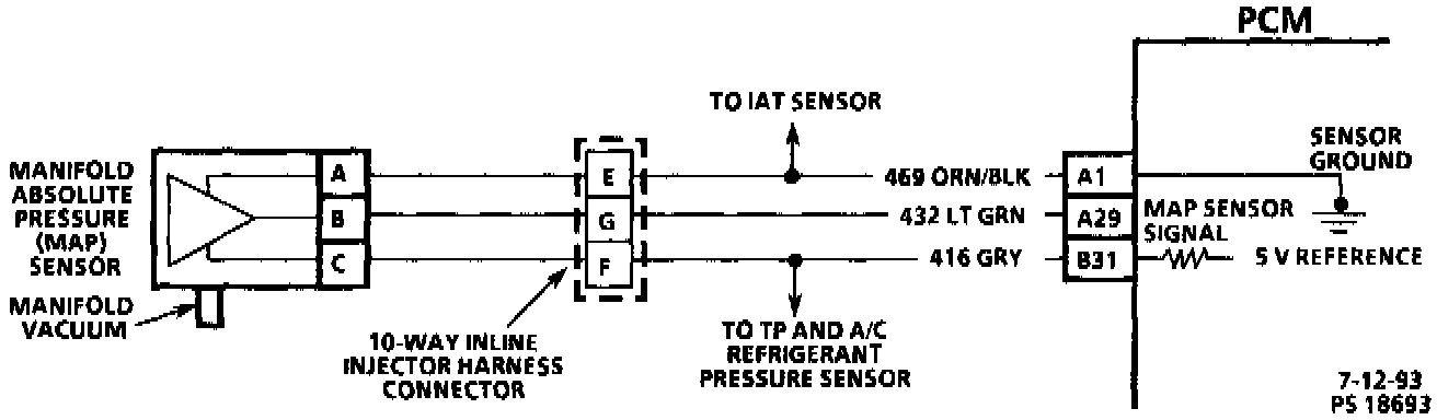 3. Check vacuum hose to sensor for leaking or restriction. Be sure no other vacuum devices are connected to the MAP hose.